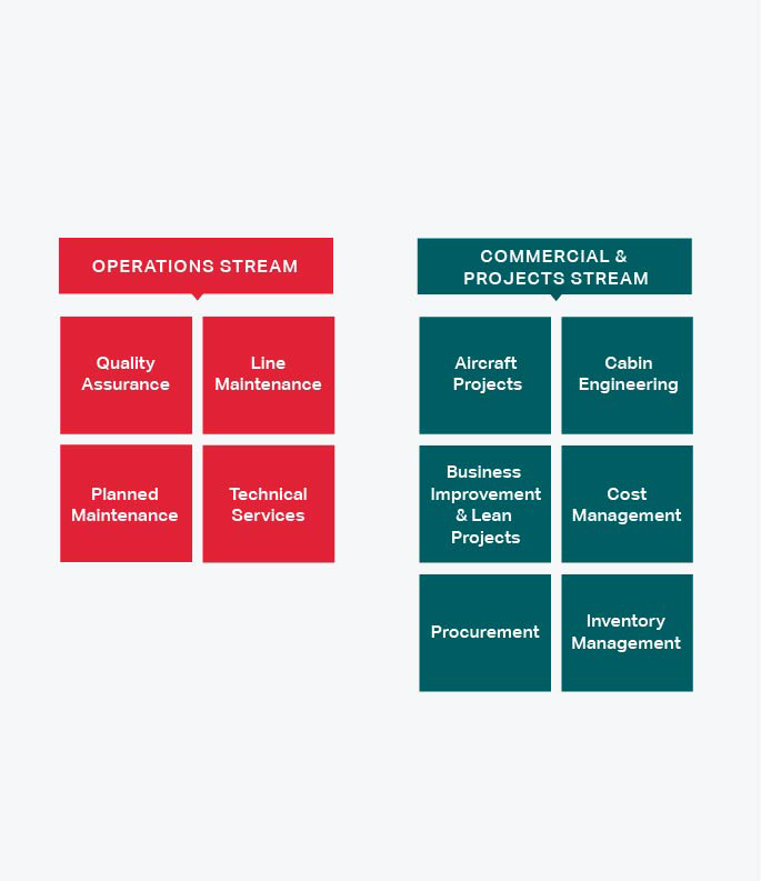 Once you have completed the three-year Graduate Engineer Programme, you’ll have the opportunity to specialise in a particular area within either of our engineering streams. No matter whether you decide to pursue the Operations or Commercial & Projects Stream, you can expect to gain deeper insight into the interplay between these two areas as well as continued support to develop your management skills. From there, you can look forward to working as part of the team that drives innovative change to help us fulfill our vision to become the world's best airline.